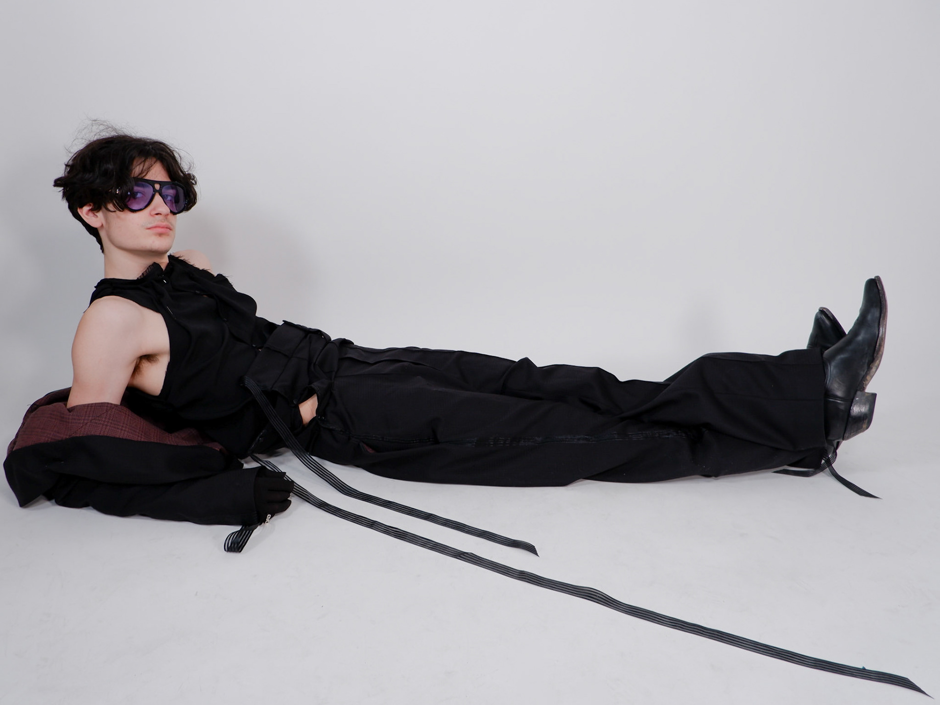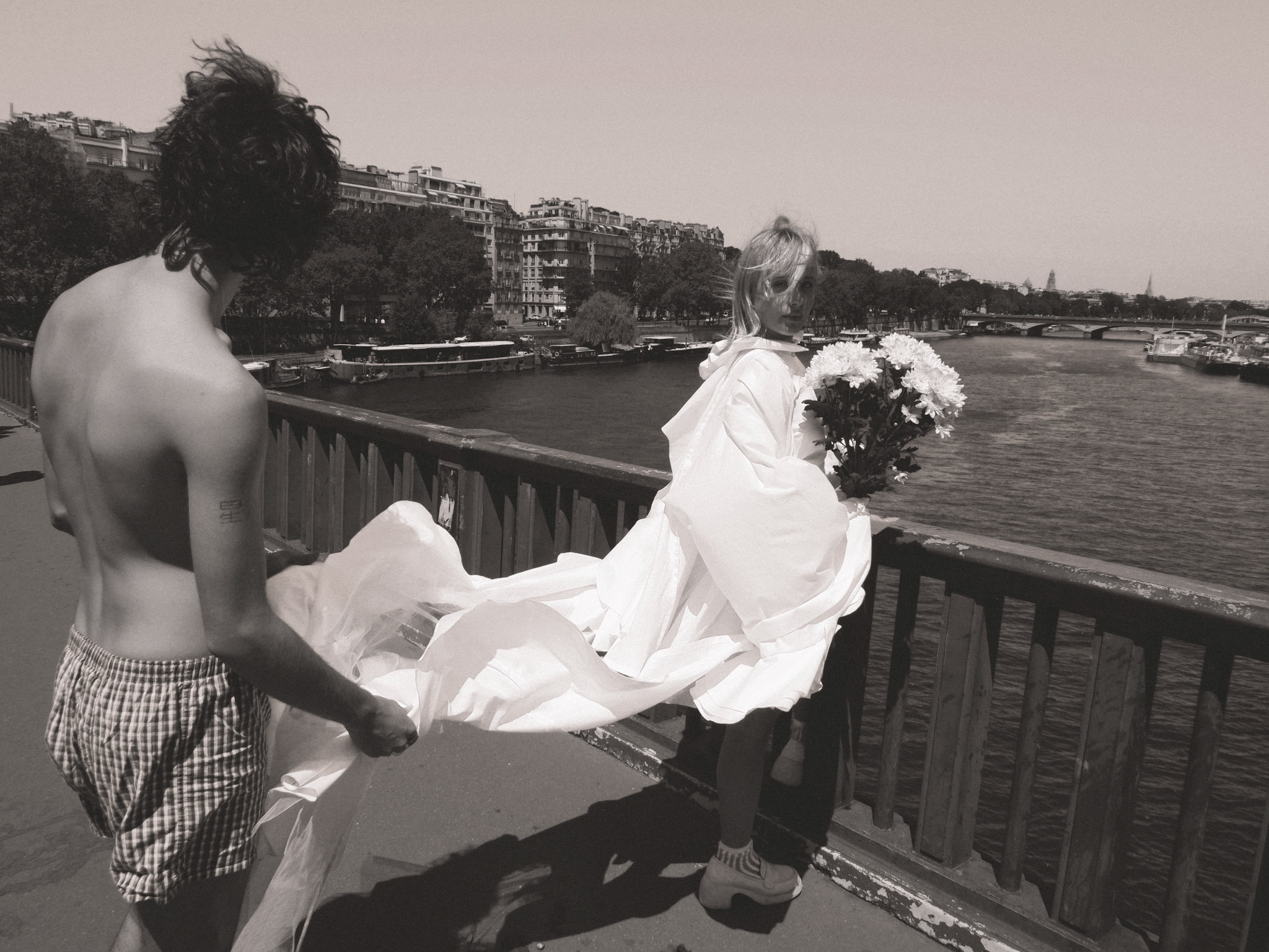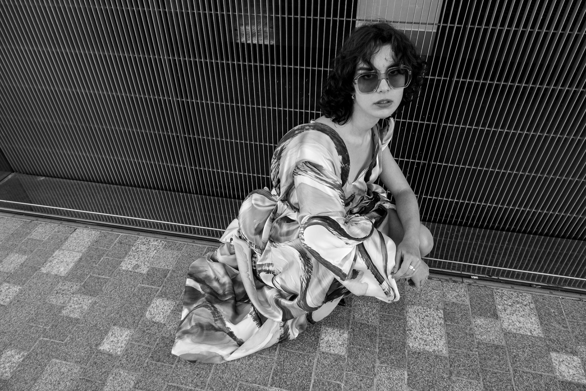 Dress draped with 5 meters of silk painted in ink. Picture taken in Nice and printed as a giant poster.