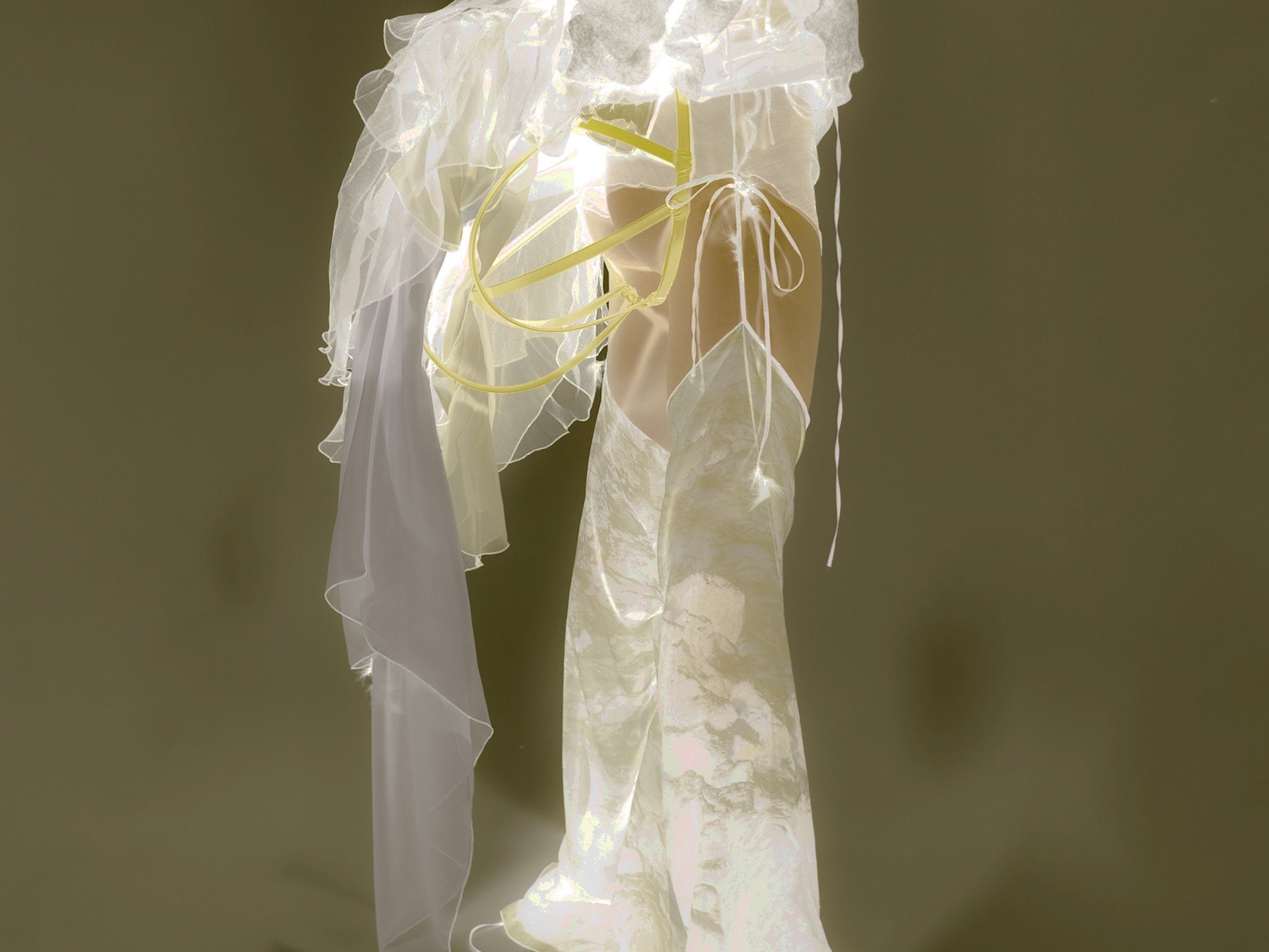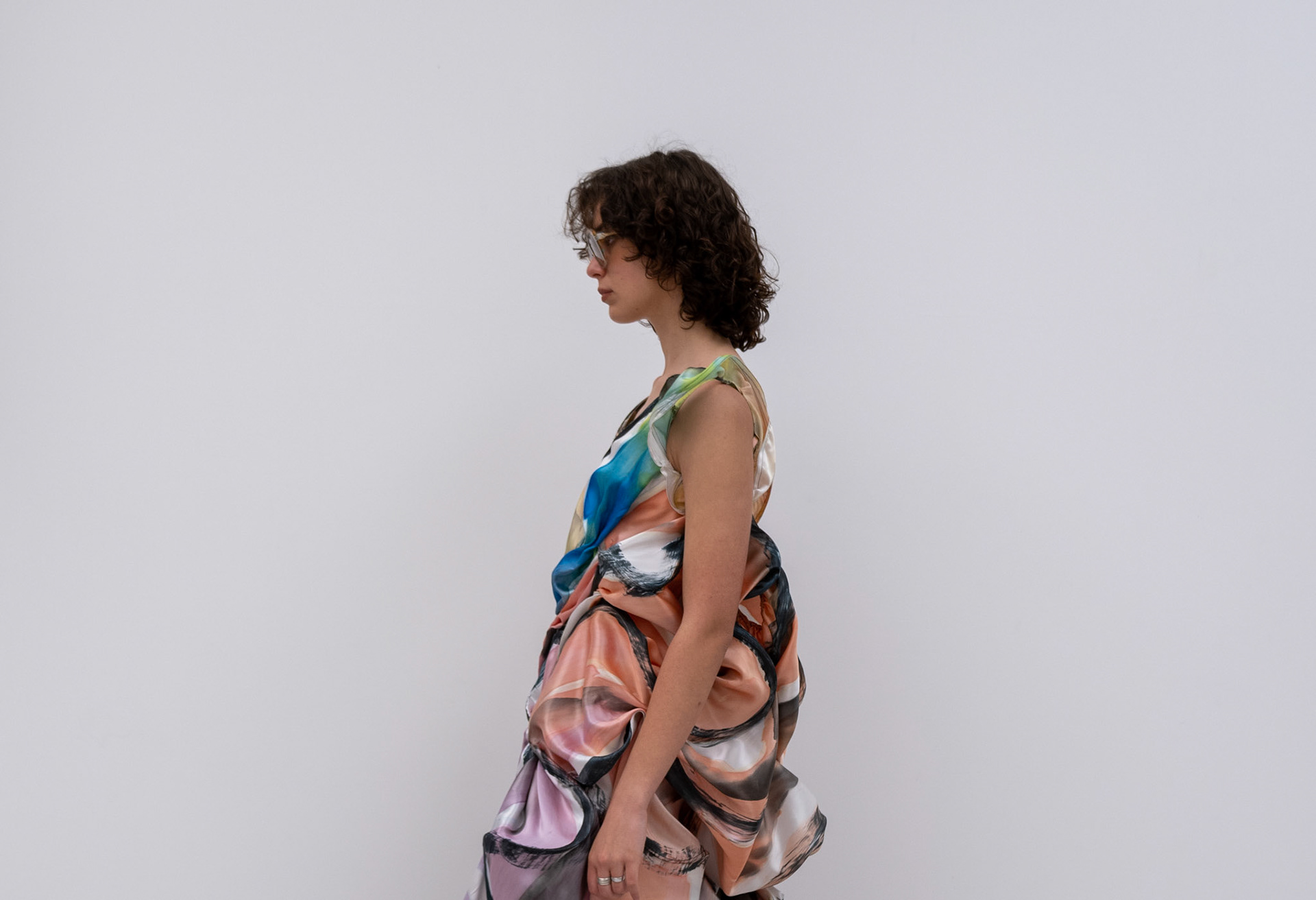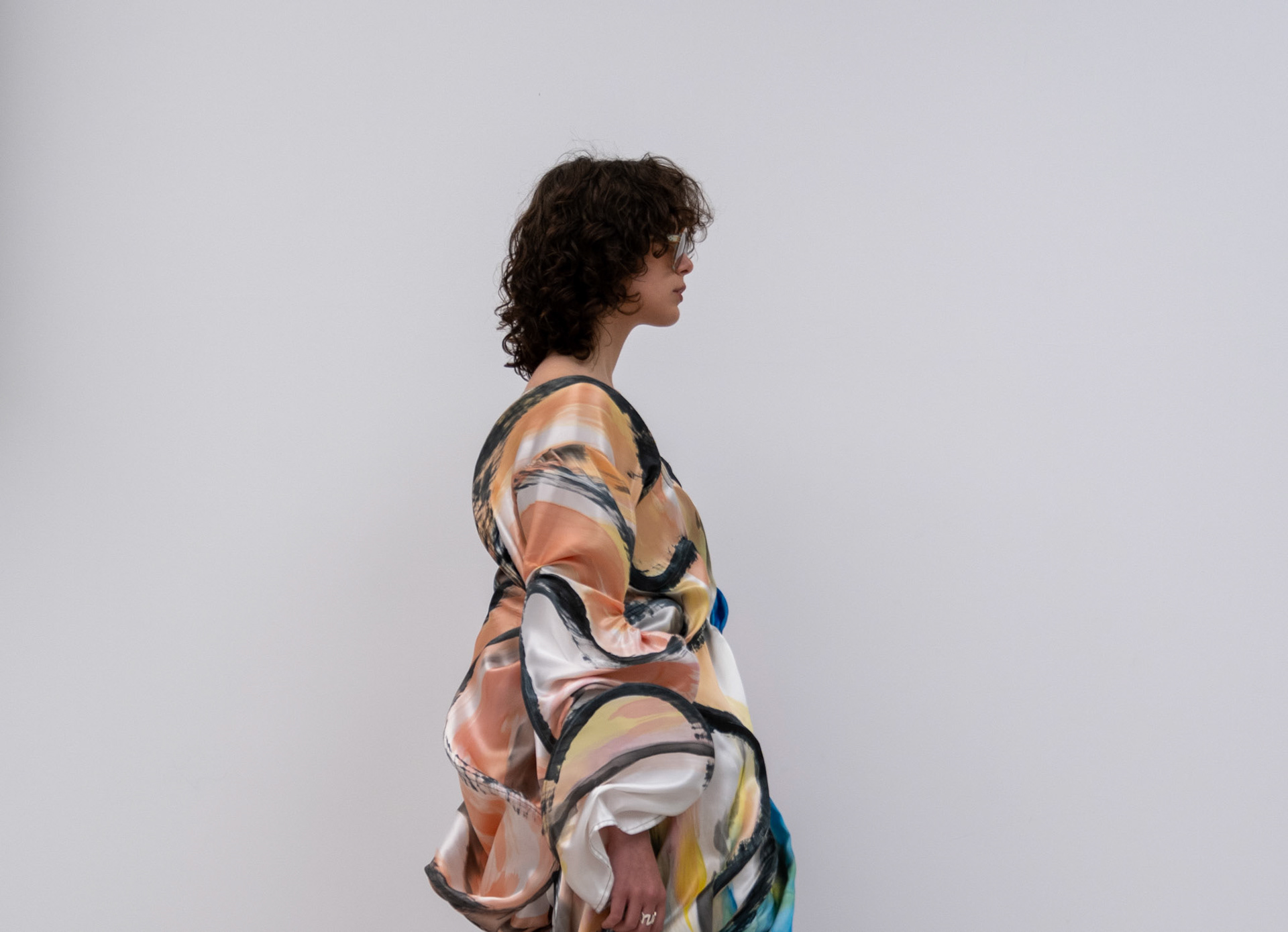 A painting inspired by my stairwell. A dress mixed, tormented and passionate. A print voluminous, radiant and floating. A silhouette wild, smooth and physical.